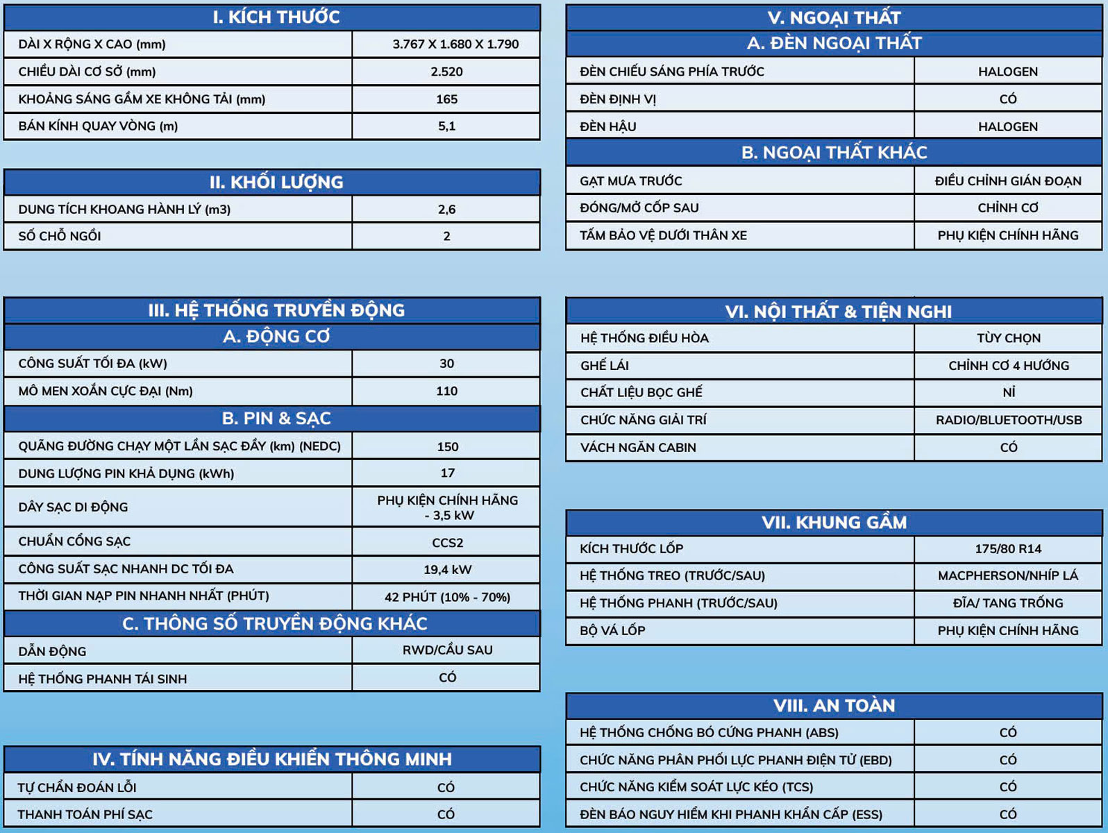 150 km/1 lần sạc  |  Công suất tối đa 30 kW